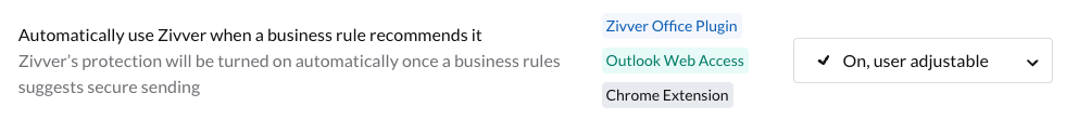 When the organization uses Zivver for ad hoc communication of personal health information, this requirement is met if the organization sets Zivver to be enabled by default for every email or when certain business rules recommend it.