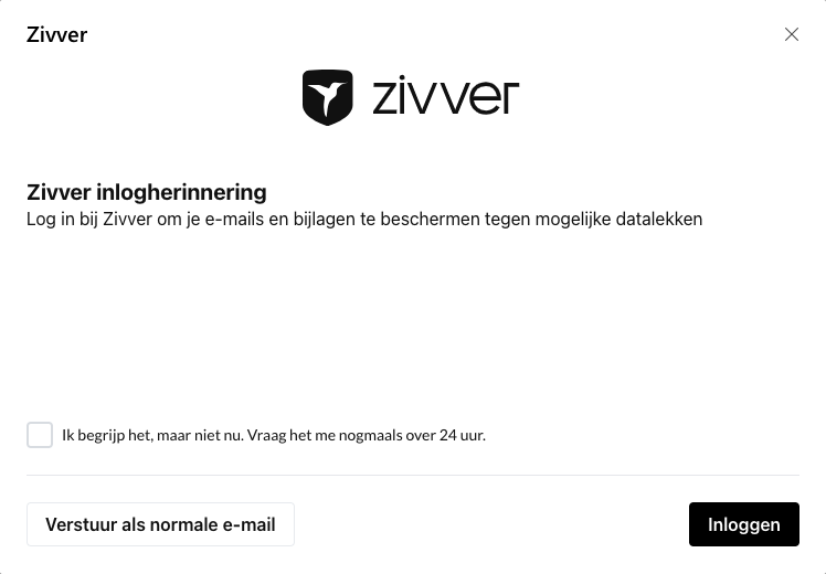 Als de gebruiker nog niet is ingelogd met het persoonlijke account, laat de gebruiker dan inloggen in Zivver met het persoonlijke account.